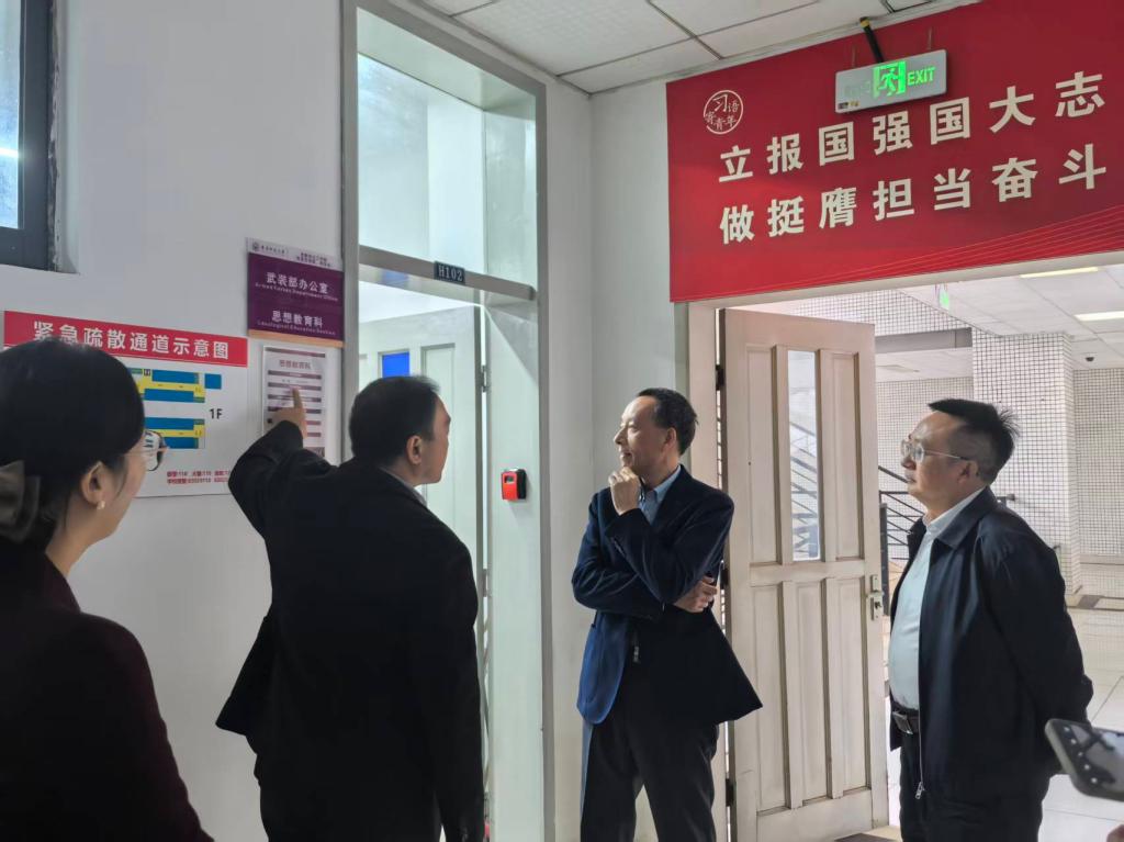 学校党委书记黎德龙、副书记谭勇一行于10月29日下午深入学工部走访调研,亲切慰问各科室干部职工,并围绕党建与学生工作深度融合进行指导。学工部部长何亮详细汇报了部门科室设置、职能职责、队伍建设及日常运行情况,重点介绍了党支部在政治引领、学生服务、校园稳定等方面的工作成效。黎书记与部门职工亲切交流,深入了解大家的工作内容与实际困难。