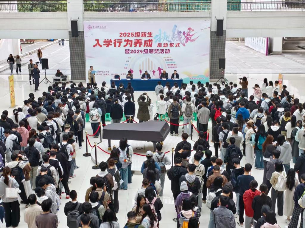 近日,学工党支部充分发挥党建引领作用,成功举办2025级新生入学行为养成挑战赛启动仪式暨2024级颁奖活动。学工党支部相关负责同志与图书馆、体育部等部门代表教师共同出席,2024级获奖学生及2025级新生代表参加活动,现场气氛庄重热烈。此次活动是学工党支部深化“三全育人”工作的重要举措,通过党建带动育人,有效促进了学生思想政治与行为养成教育的深度融合。